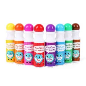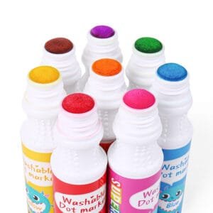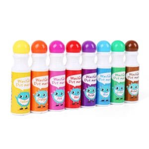This set includes 8 vibrant washable dot markers (18mm, 60ml), perfect for creative projects. Easy to clean and non-toxic, these markers are ideal for kids’ crafts, schoolwork, and fun artistic expression!
